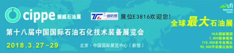 第18屆中國國際石油石化技術裝備展覽會于2018年3月27-29日在北京新國展舉辦,一通防爆電氣有限公司(中國 南陽)在E3館E3816展位,恭候您的光臨!